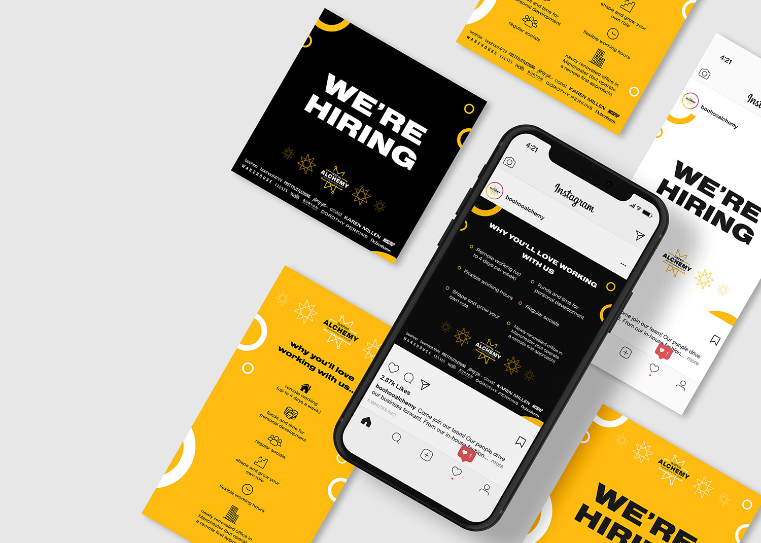 Designing a new internal sub-brand for boohoo's solution architecture department. I designed the logo for the new brand and worked with the teams to design branded collateral including email signatures, word and powerpoint templates and large format wall designs.