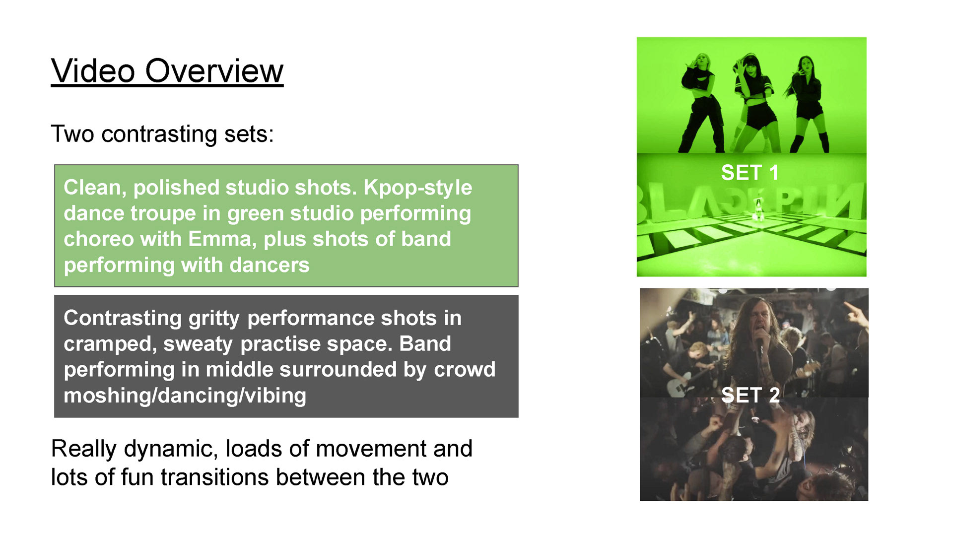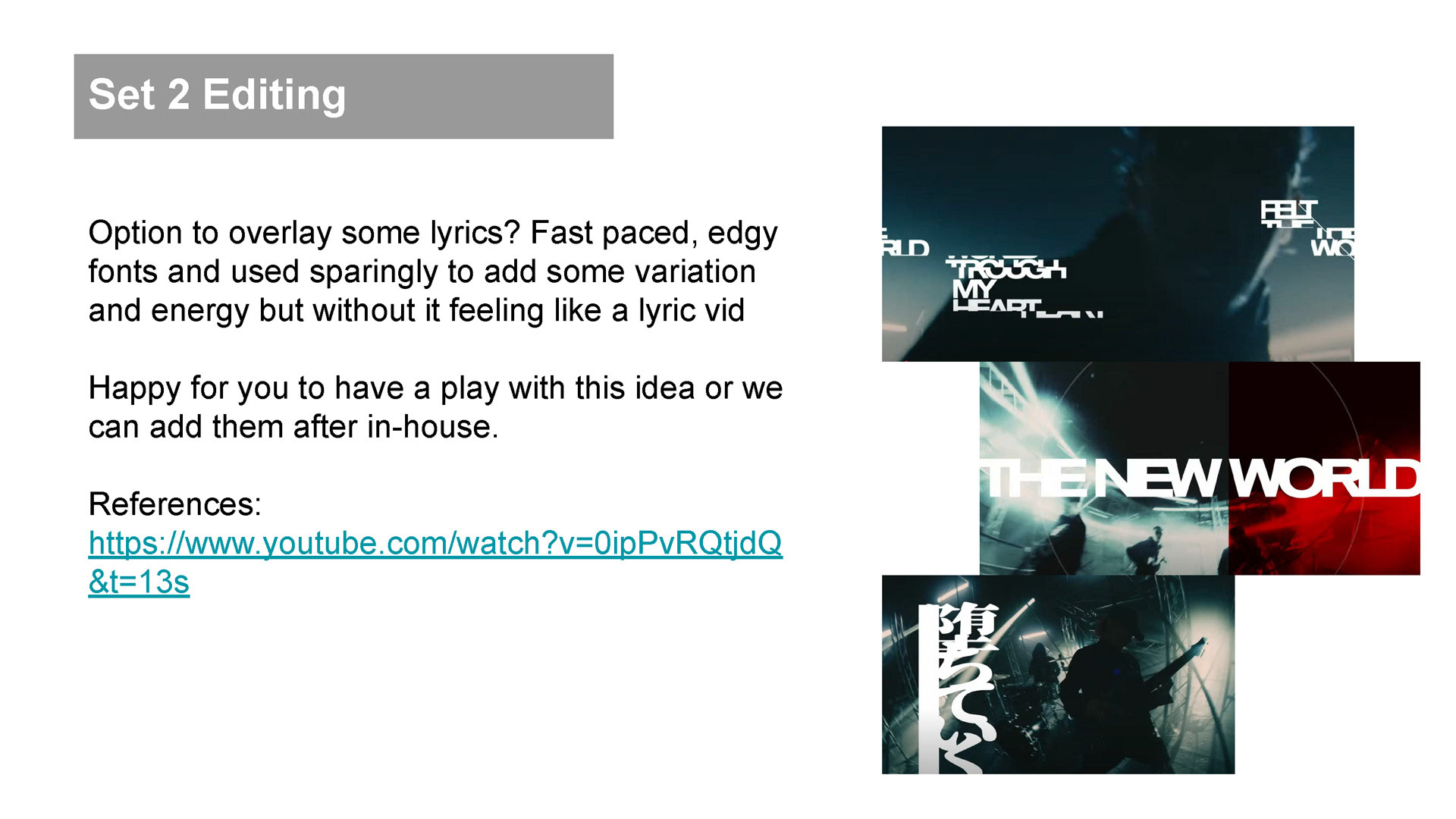 I've created various videos for the band - directing music videos such as their ambitious k-pop inspired video 'DeGEN', creating a lyric video for their single 'NICE TRY', editing social content including reels, tiktoks and 'behind the scenes' content, as well as looping images to add motion elements to their artwork. I have also co-created videos for their live sets, which they display on two large portable screens, as well as coming up with short-form content ideas including a tiktok with over 800,000 views.