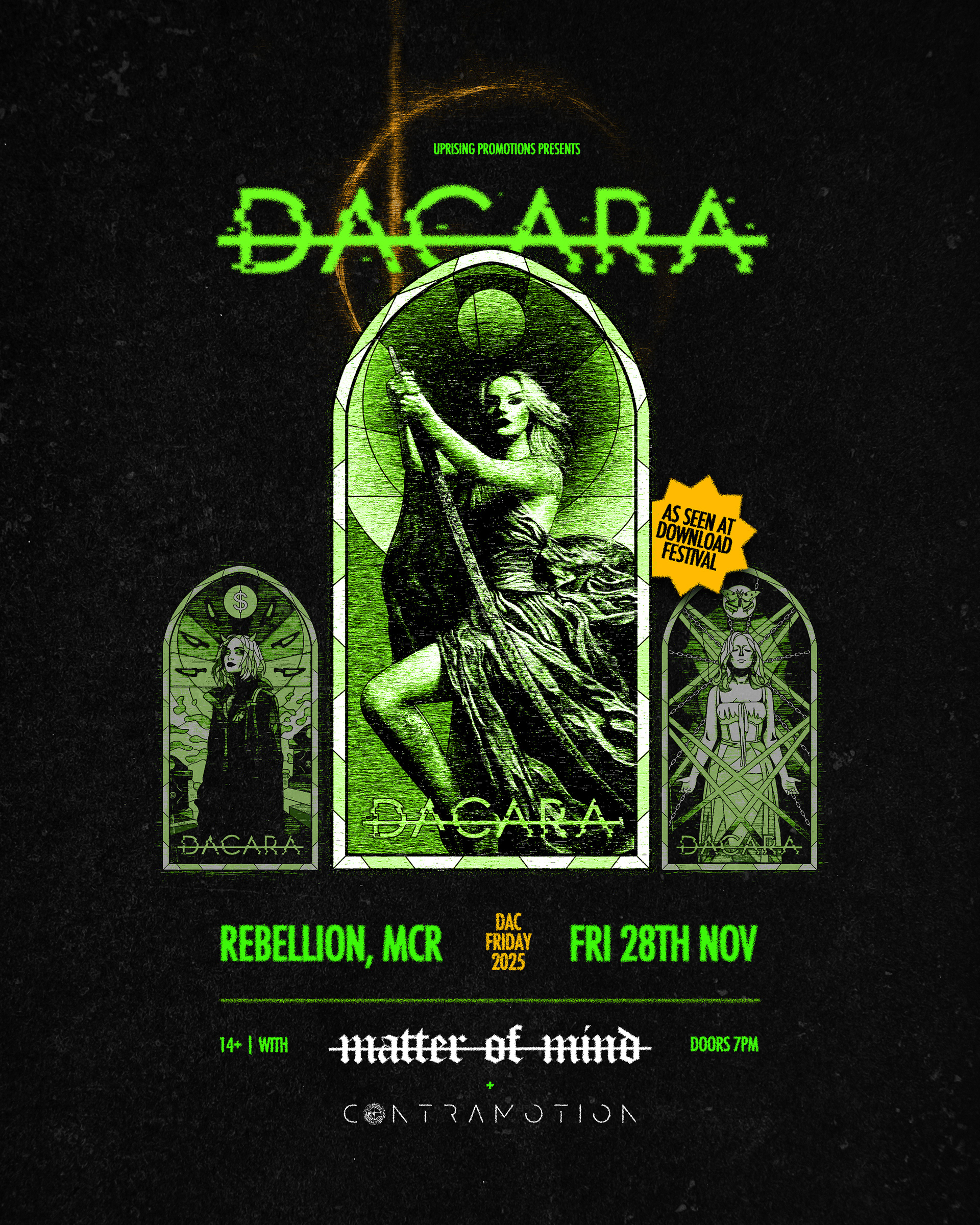 I've been a one woman marketing team for DACARA since their inception in 2019. DACARA are a Manchester-based band that are hard to pigeonhole, blending aspects of rock, pop, J-rock and metal. They needed a distinctive image to stand out in a saturated local scene, with their music taking influence from videogames, anime and popular culture. I've led their branding, artwork, merch, styling and social content, as well as managing the band's press releases and successfully getting them a slot at Download Festival 2025.