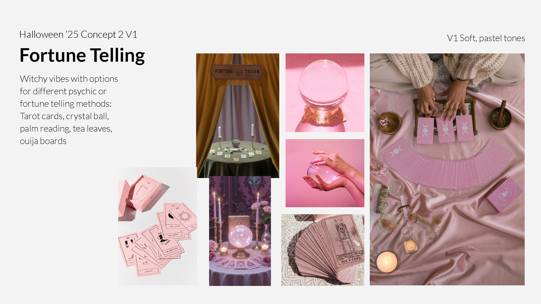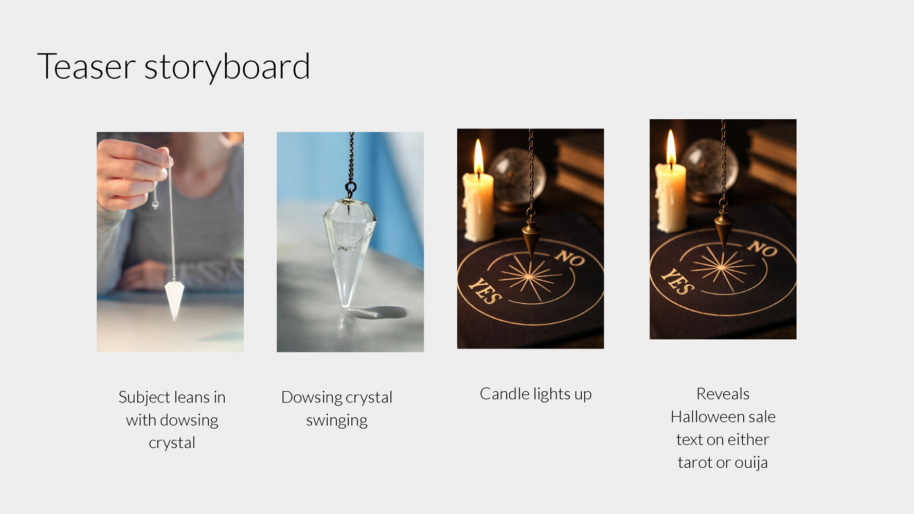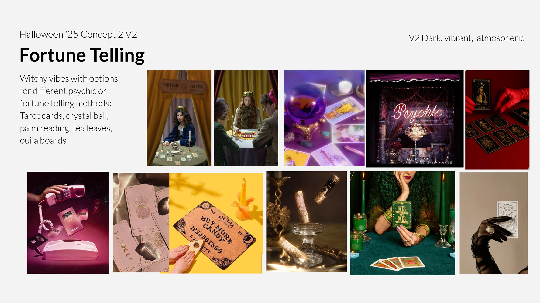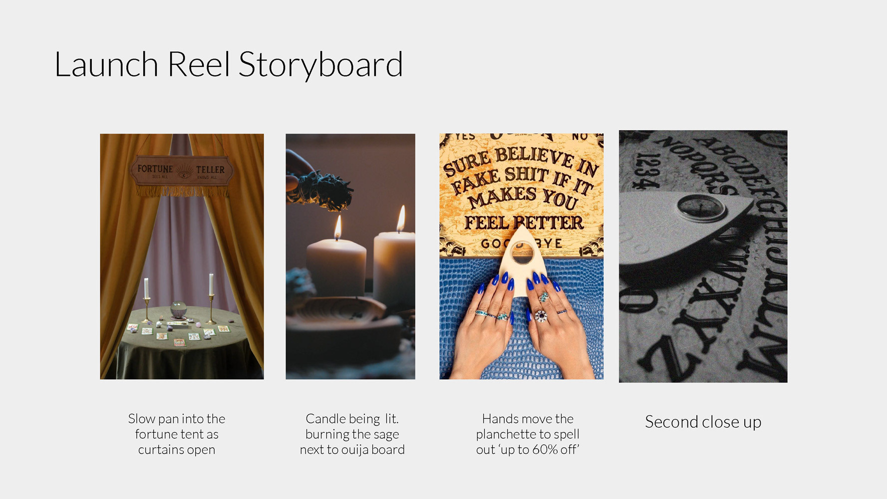 Due to time constraints I designed and made many of the props myself including the etched ouija boards and wooden 'Tatti Teller' sign. We had less than a week to plan this shoot and rolled it out the following week.